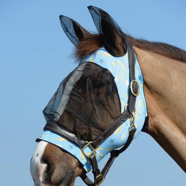 Zip up design eye saver to protect horse's eyes and ears from flies, insects and UV rays: The Deluxe Stretch Eye Saver With Ears features raised mesh eye insert for unobstructed vision, forelock hole for added comfort and mesh ears for extra protection. The stretch fabric offers a secure fit around the horse’s head preventing insects from entering the mask. Offering UV 98%+ Block, excludes mesh areas.